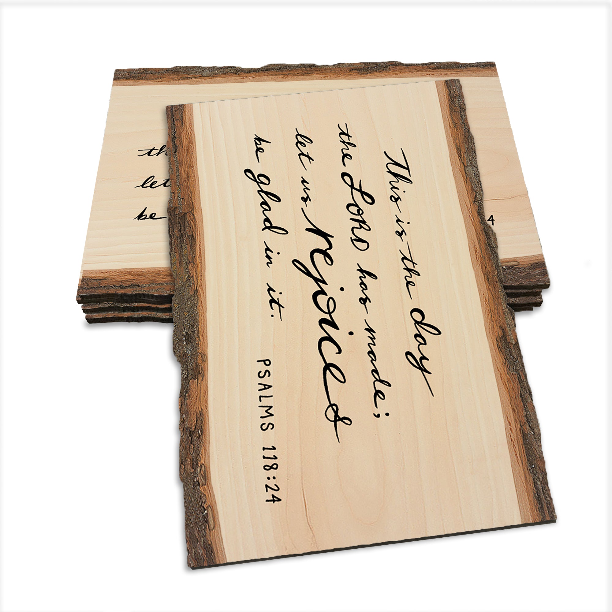 • Laser charred edge and colorful imagery to create a believable 'live edge'.