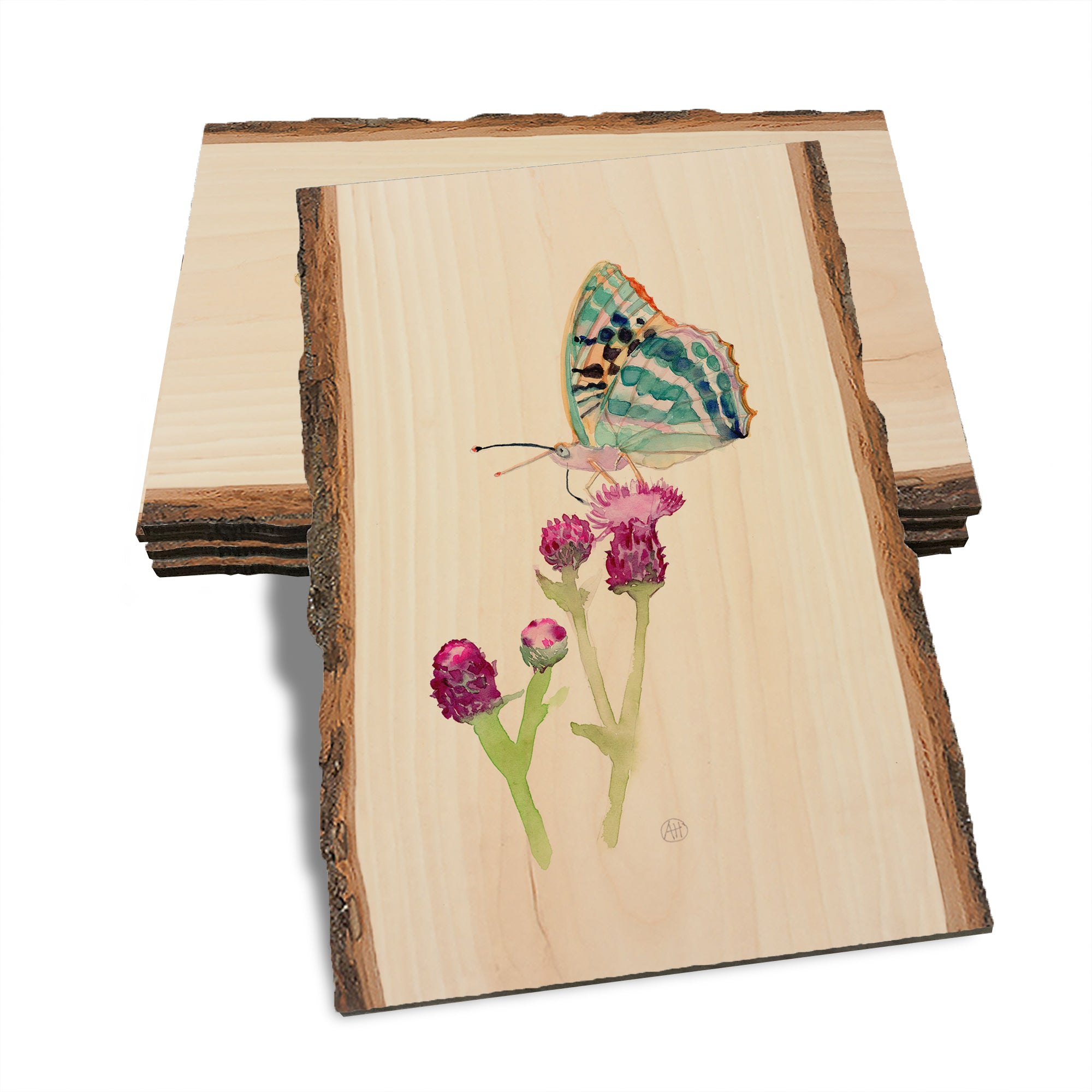- Laser charred edge and colorful imagery to create a believable 'live edge'.