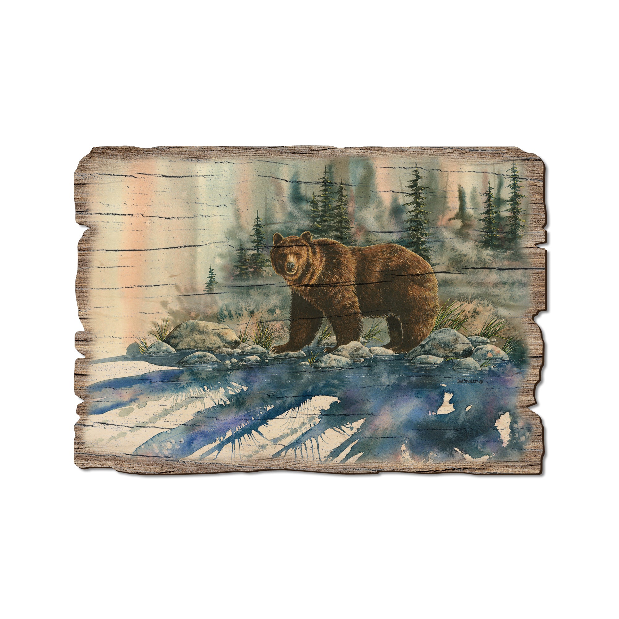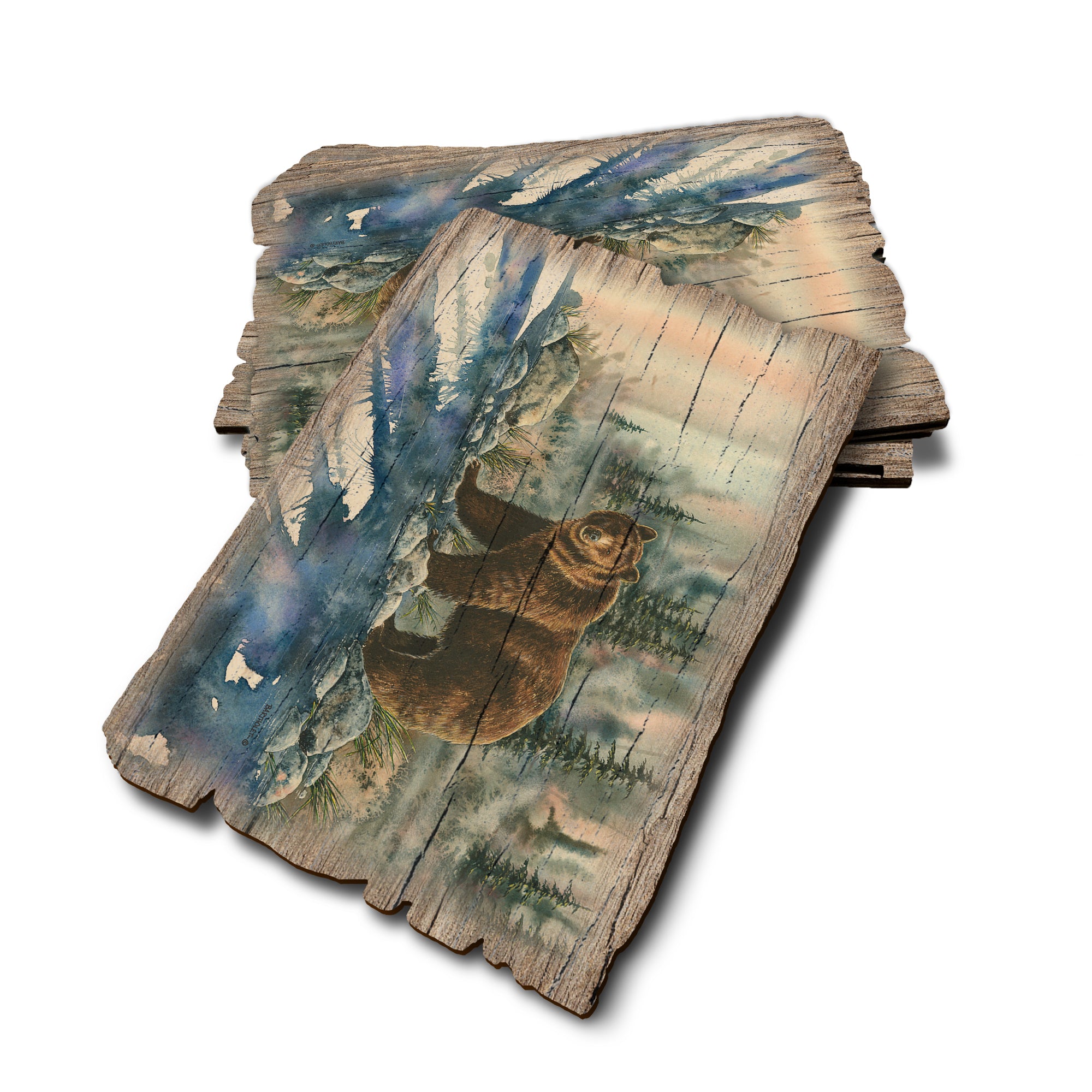 • Laser charred edge and colorful imagery creating arustic and weathered look.