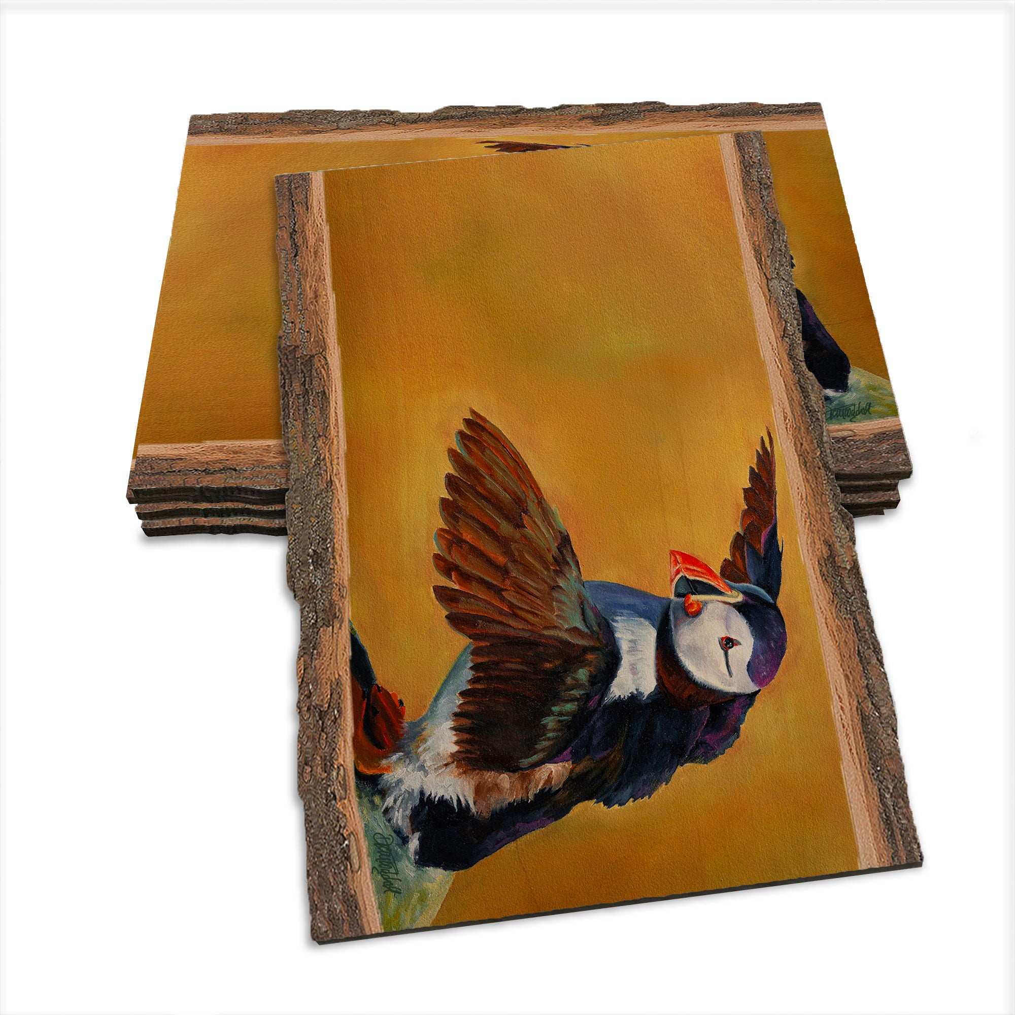 - Laser charred edge and colorful imagery to create a believable 'live edge'.