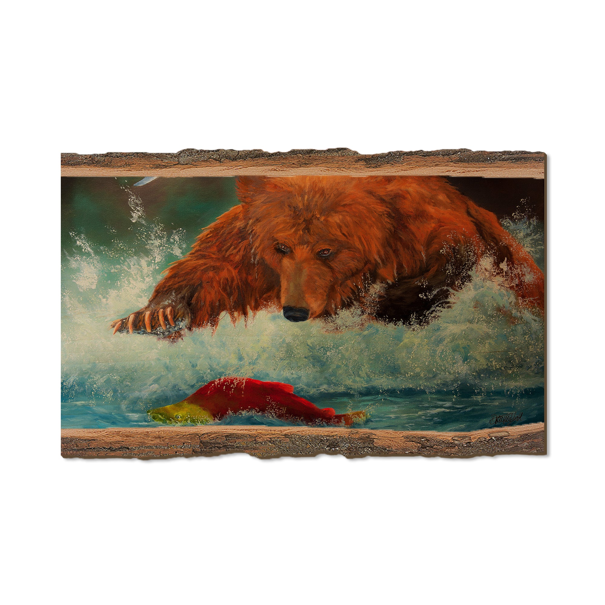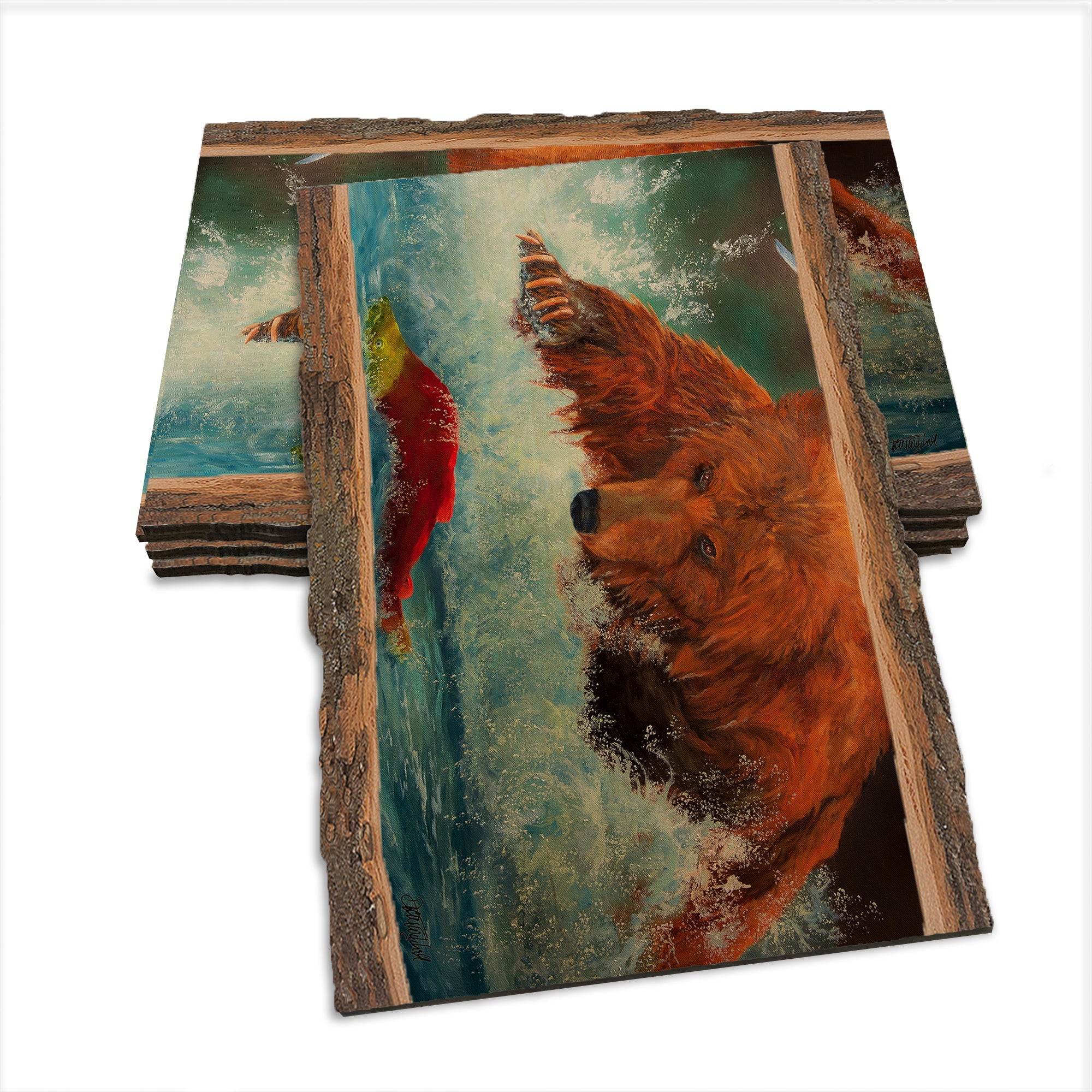 - Laser charred edge and colorful imagery to create a believable 'live edge'.