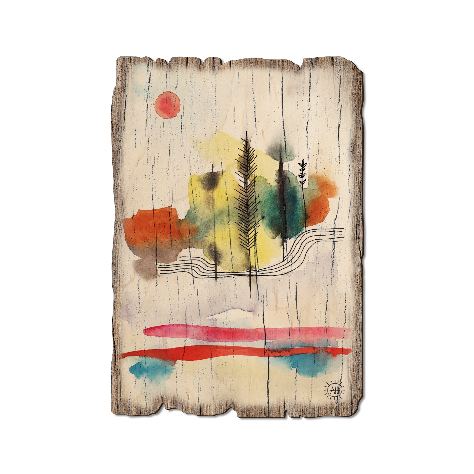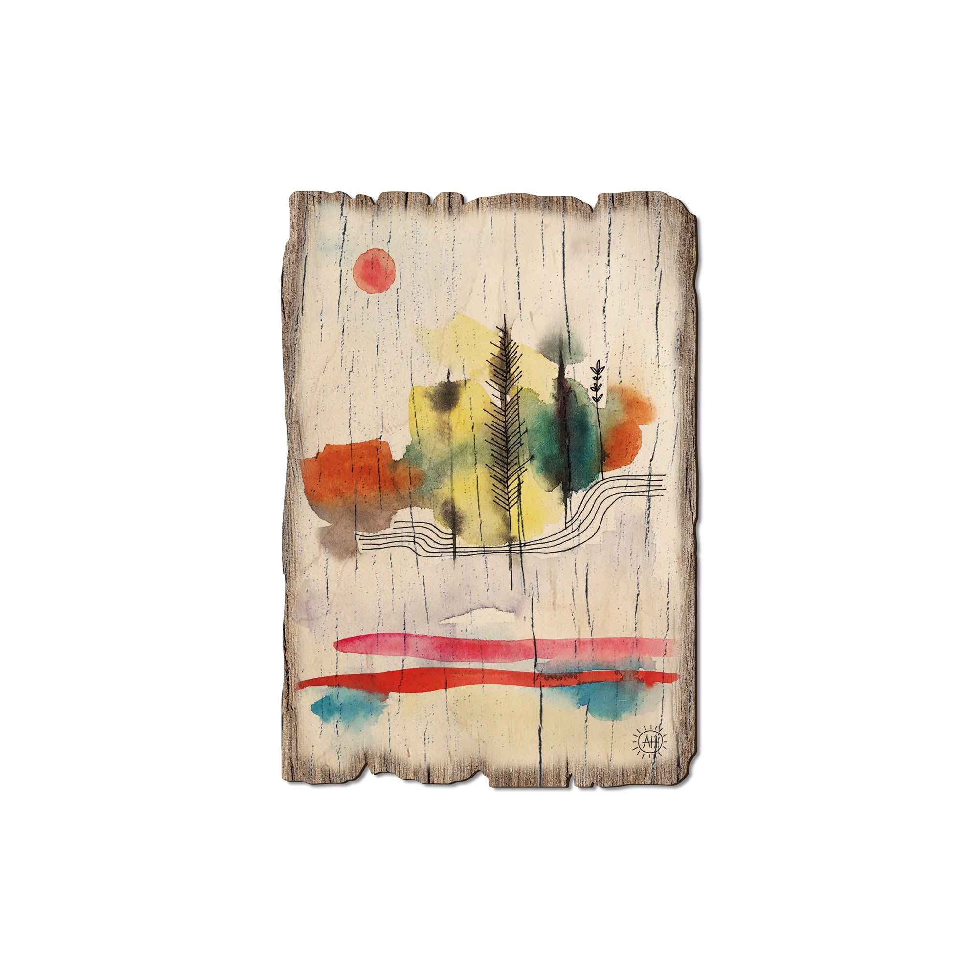 - Laser charred edge and colorful imagery creating arustic and weathered look.