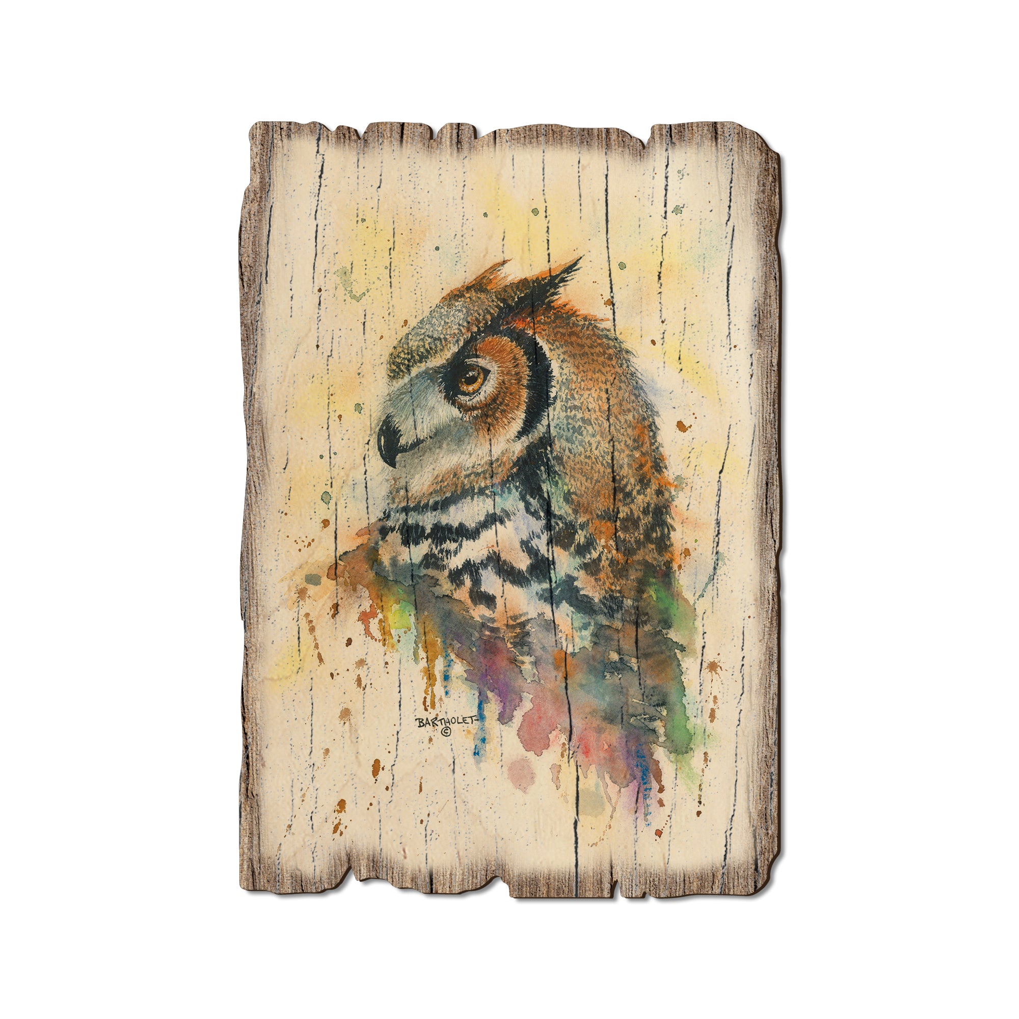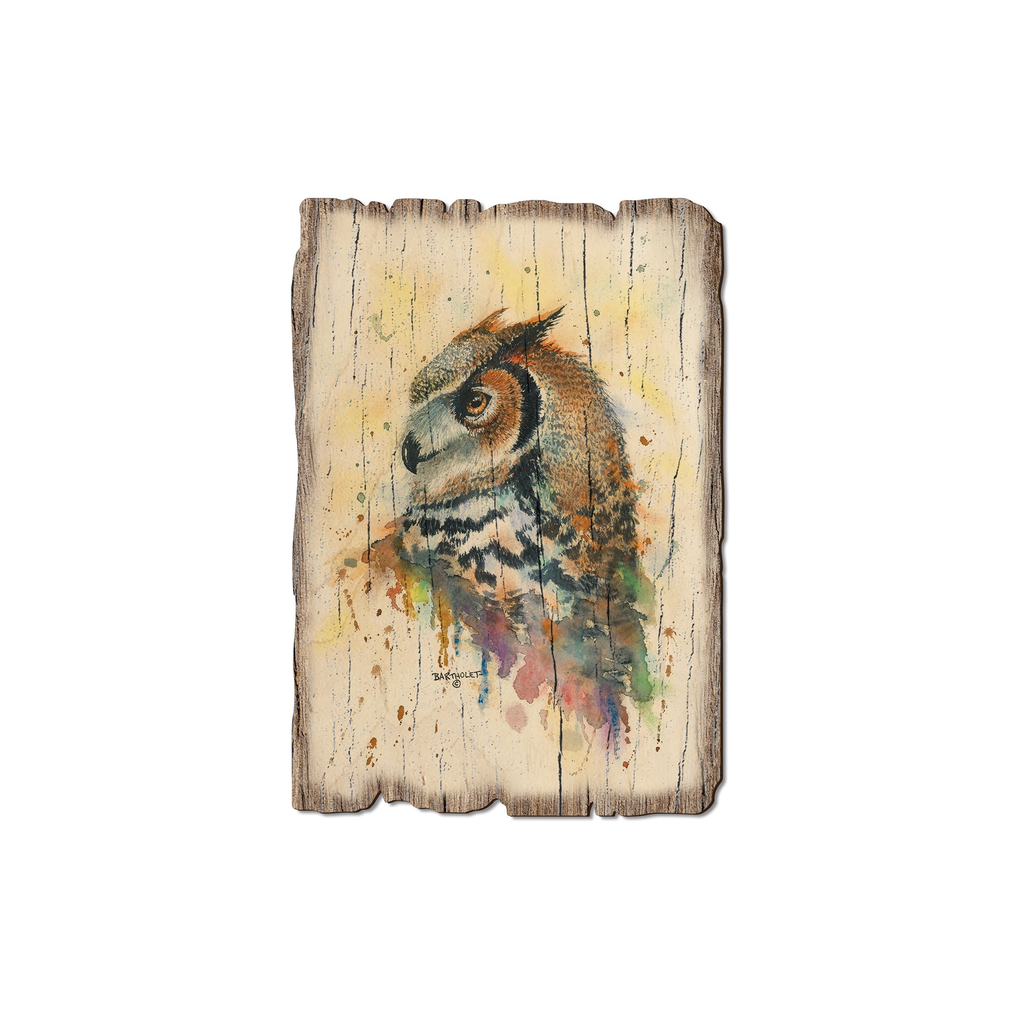 - Laser charred edge and colorful imagery creating arustic and weathered look.