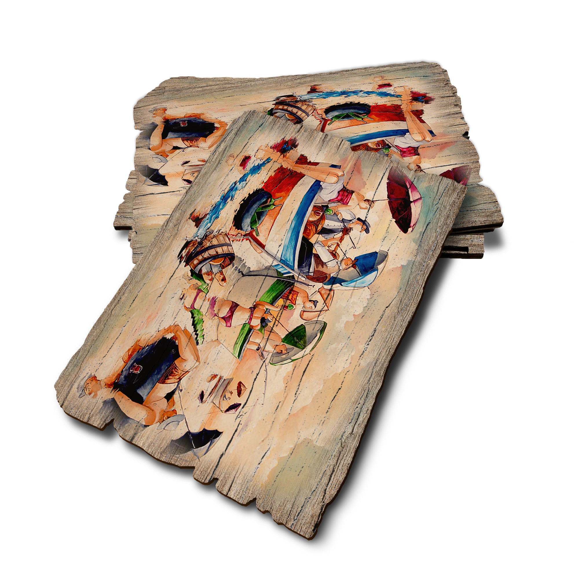 • Laser charred edge and colorful imagery creating arustic and weathered look.