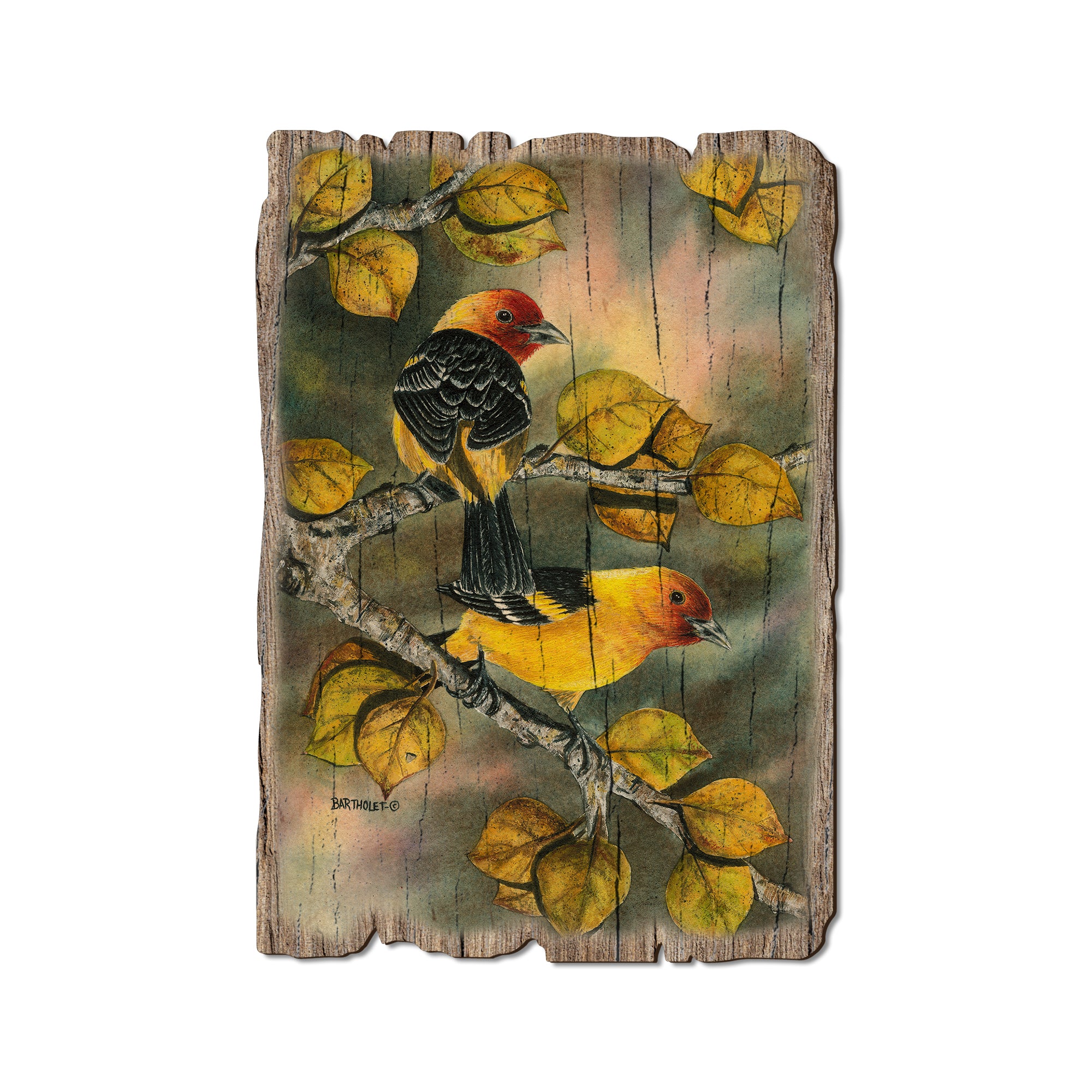 - Laser charred edge and colorful imagery creating arustic and weathered look.